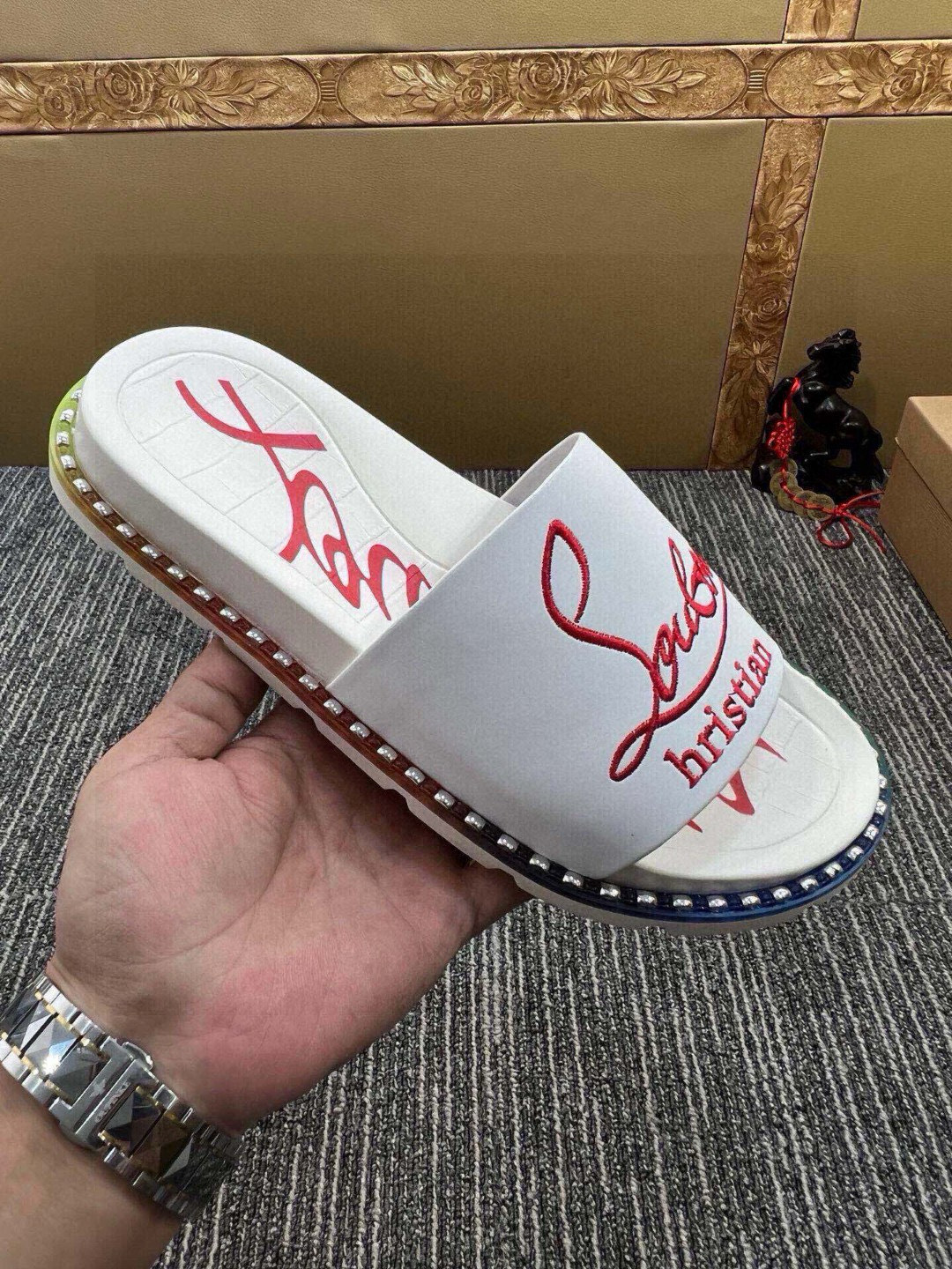 Detta skor är AAAAA 1: 1 kvalitet (utmärkt). Material som används är identiska med de ursprungliga. Christian Louboutin varumärkes märken är omöjliga att upptäcka den autentiska. Bilder ta med själva skor, vad du får är 100% samma sak med våra bilder.