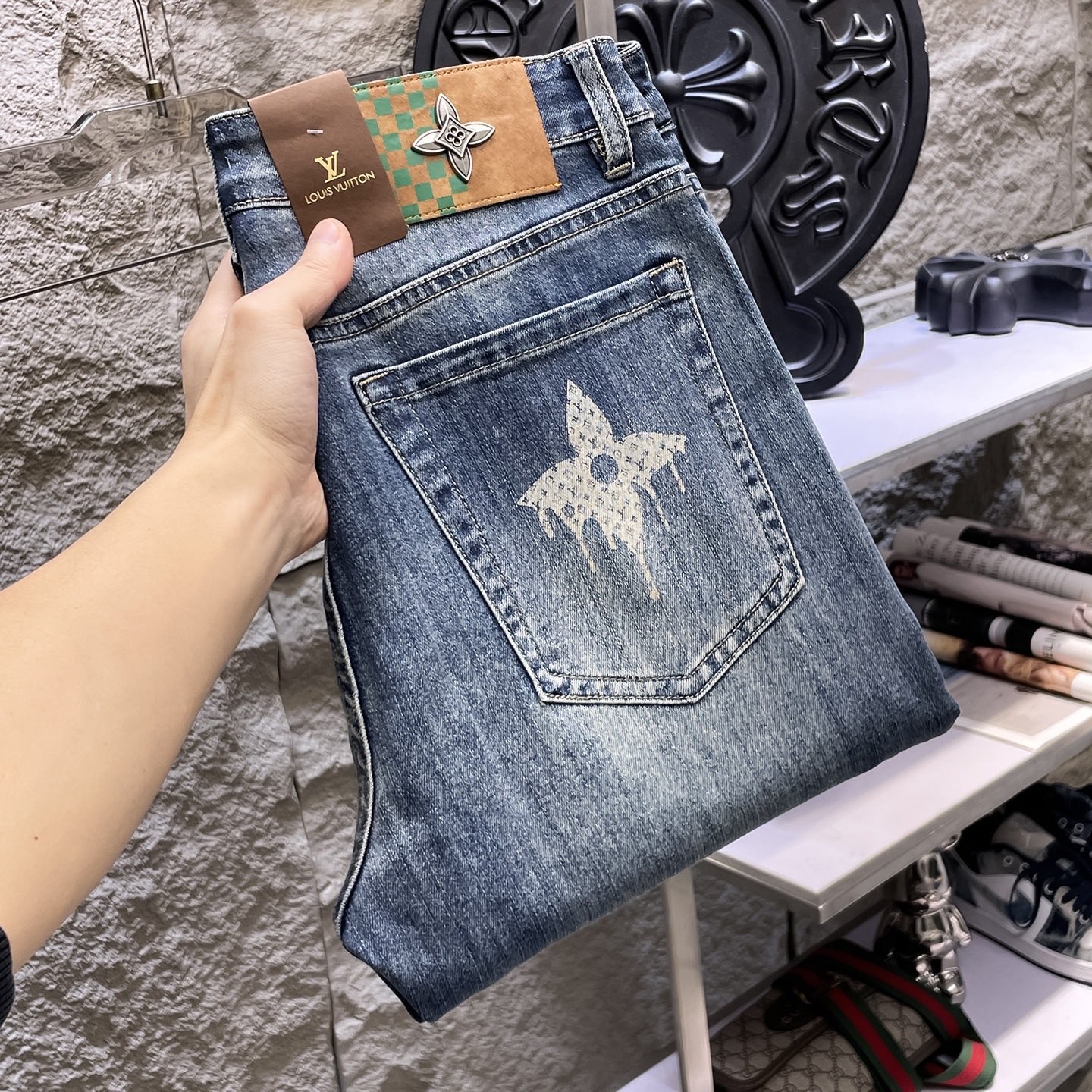 Detta kläder är AAAAA 1: 1 kvalitet (utmärkt). Material som används är identiska med de ursprungliga. Louis Vuitton varumärkes märken är omöjliga att upptäcka den autentiska. Bilder ta med själva kläder, vad du får är 100% samma sak med våra bilder.