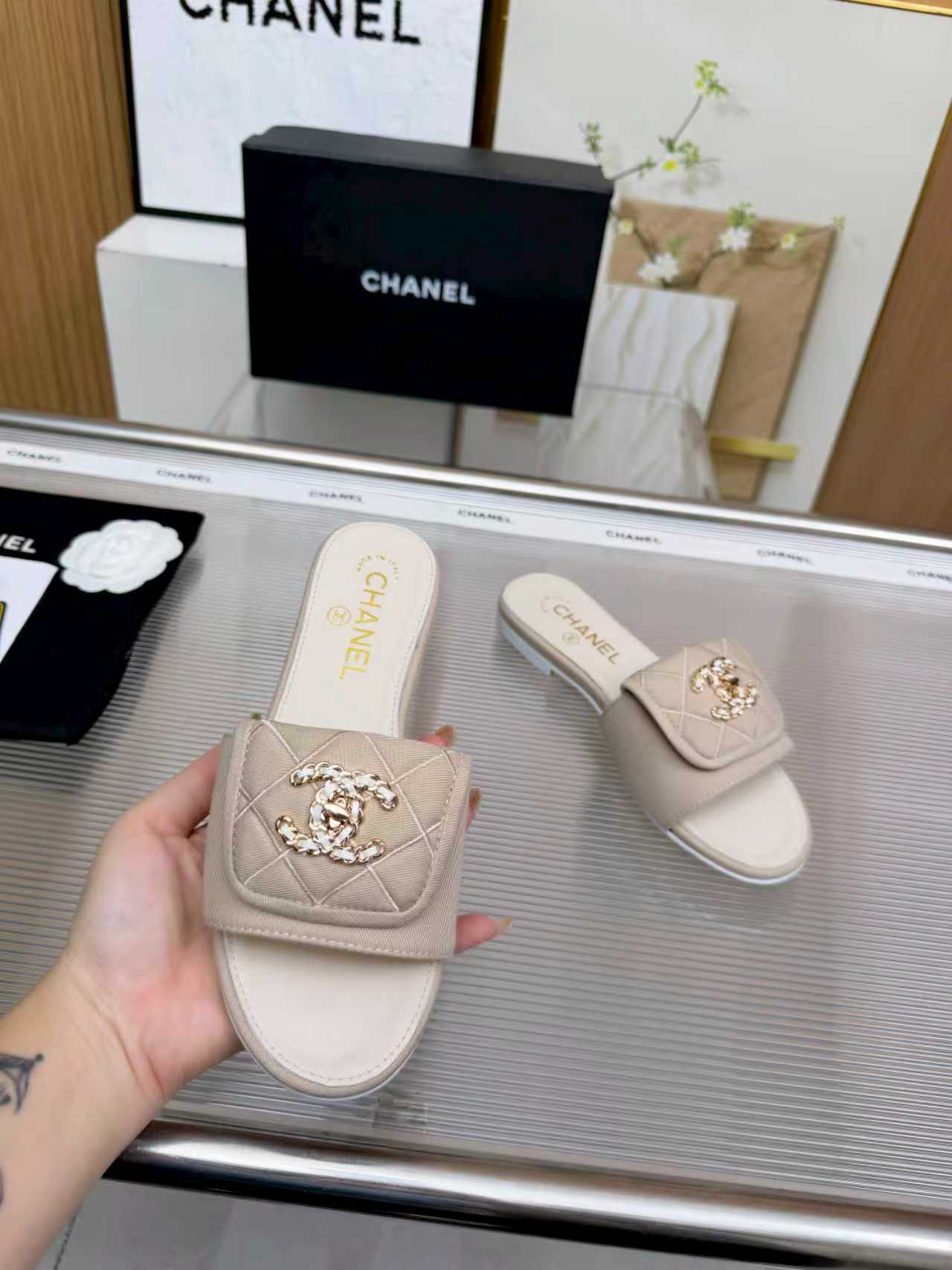 Detta skor är AAAAA 1: 1 kvalitet (utmärkt). Material som används är identiska med de ursprungliga. Chanel varumärkes märken är omöjliga att upptäcka den autentiska. Bilder ta med själva skor, vad du får är 100% samma sak med våra bilder.