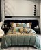 NO:873613. bed sheet set är från mode lyx designern. Mätningar : King: 200x230 / 245*250 / 48*74 cm / Queen : 220*240 / 245*270 / 48*74 cm .